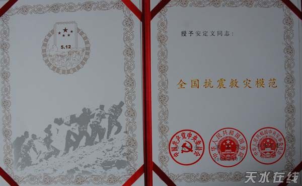 全國抗震救災模范、天水市政府副秘書長安定文同志