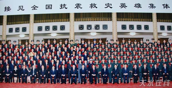 胡錦濤等九常委接見全國抗震救災英雄集體