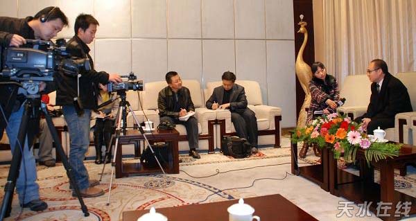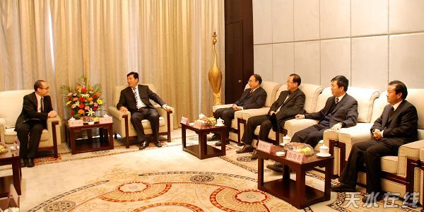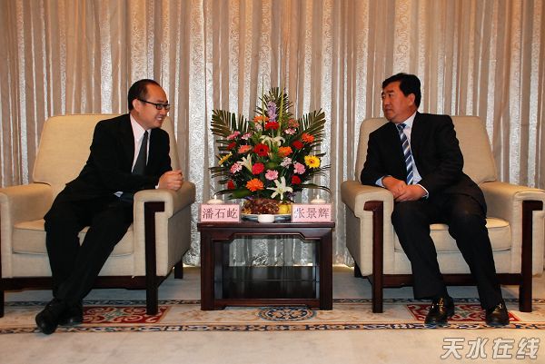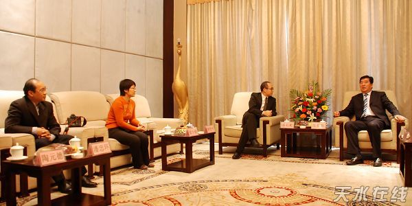 。ㄌ焖形瘯、市人大常委會主任張景輝,市委副書記、市長李文卿,市委常委、宣傳部長孫周秦,市委常委、秘書長張懷仁,副市長郭奇若等在天水賓館親切接見了前來家鄉(xiāng)察看“兒童美德工程”建設(shè)的潘石屹一行。)