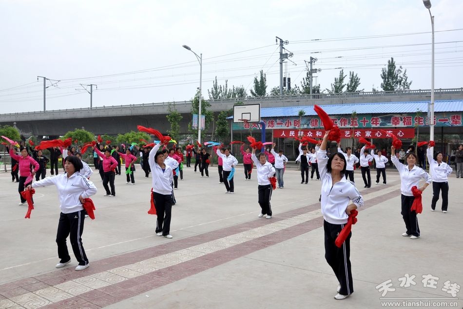 天水在線渭南報道 5月17日,陜甘文藝界走進“關(guān)中——天水經(jīng)濟區(qū)”采風慰問團成員抵達渭南市華陰市。在夫水鎮(zhèn)臺頭村文化廣場,采風團成員和臺頭村群眾一起扭秧歌、唱秦腔,進行文藝聯(lián)歡。天水市著名歌手楊濤、張文靜登臺獻藝。