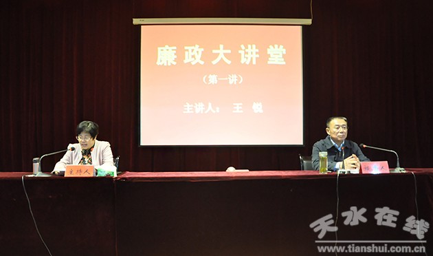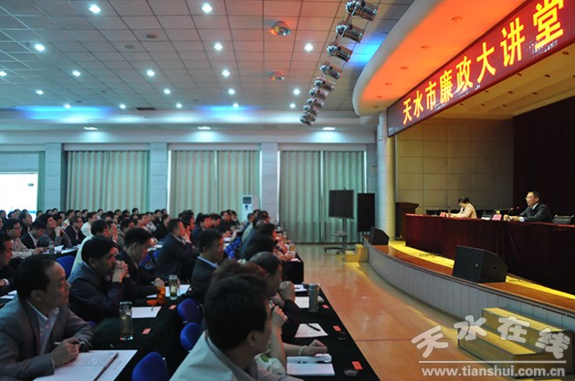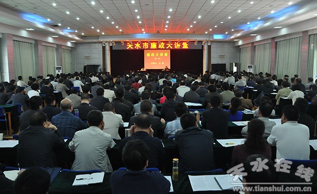 天水廉政大講堂是我市為更好地貫徹省委《關(guān)于落實(shí)黨風(fēng)廉政建設(shè)主體責(zé)任的意見(jiàn)》而采取的一項(xiàng)重要舉措。計(jì)劃每月舉辦一期,由市委常委分別主講,通過(guò)市級(jí)黨員領(lǐng)導(dǎo)干部帶頭宣講中央和省、市關(guān)于黨風(fēng)廉政建設(shè)和反腐敗工作的重大決策部署,宣傳黨風(fēng)廉政建設(shè)的形勢(shì)任務(wù),解讀重要黨紀(jì)法規(guī)制度,開展警示教育,弘揚(yáng)廉政文化,使全市黨員領(lǐng)導(dǎo)干部進(jìn)一步筑牢廉潔從政的思想防線。