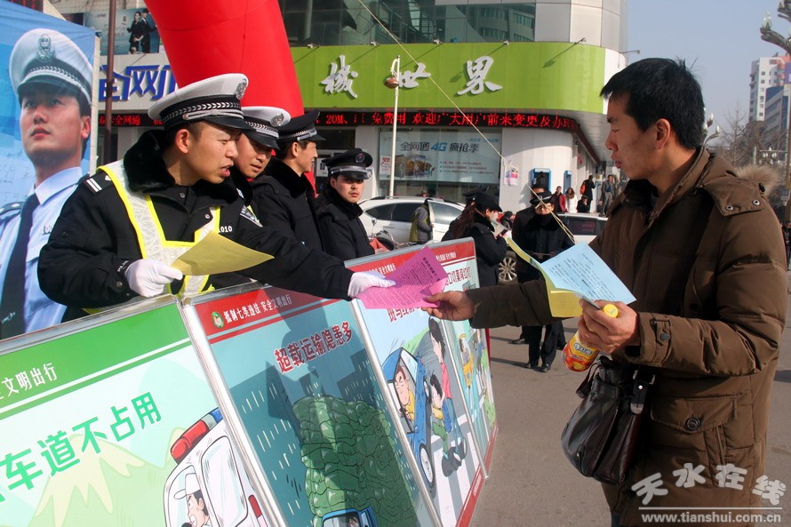天水交警聯(lián)合城管運(yùn)管開展“文明交通我倡議”宣傳活動