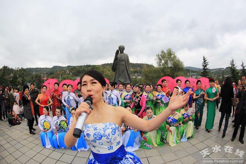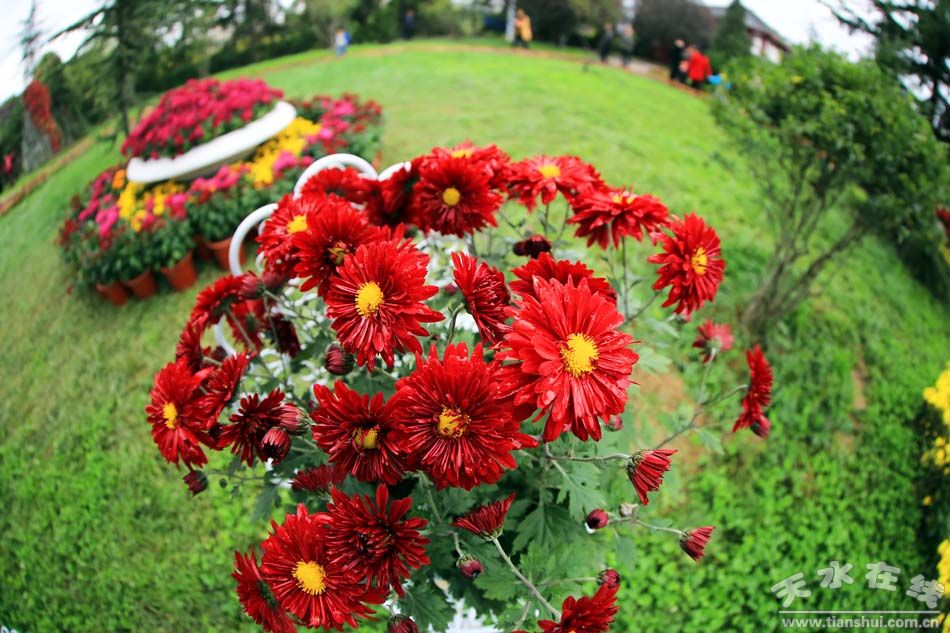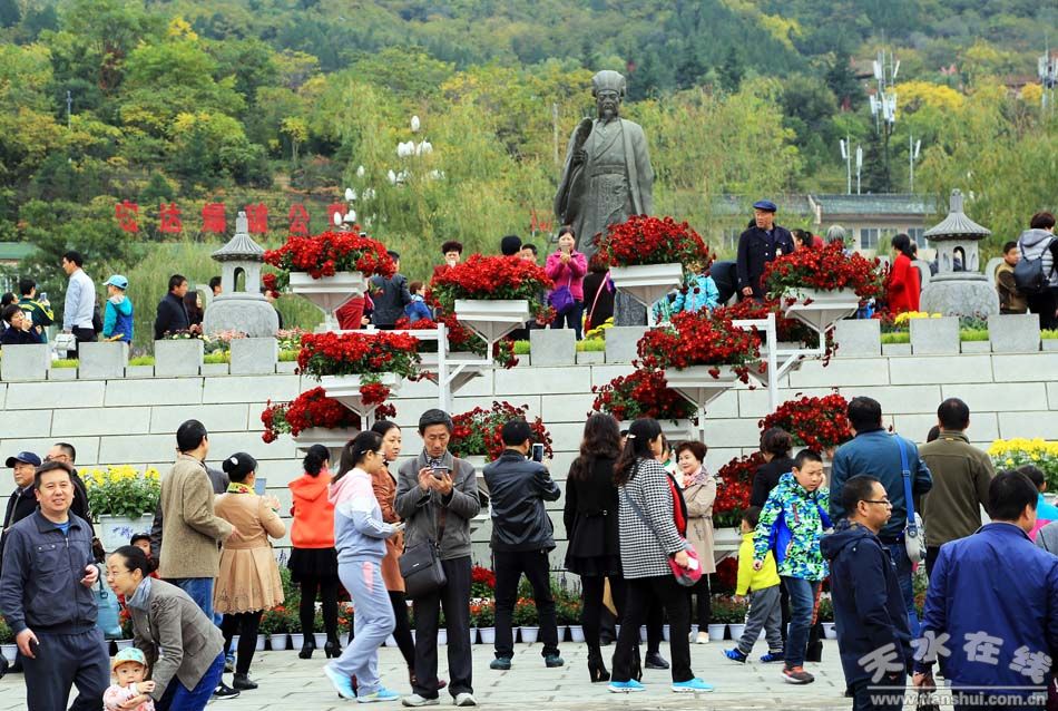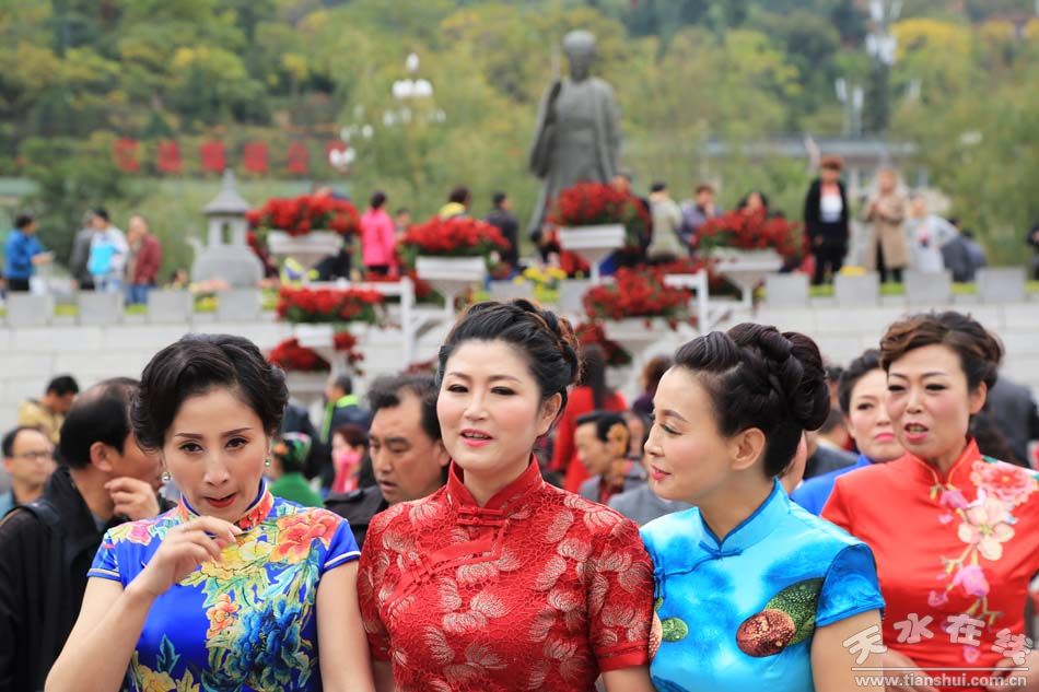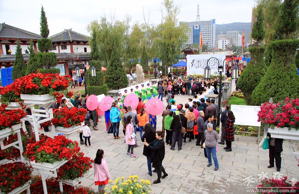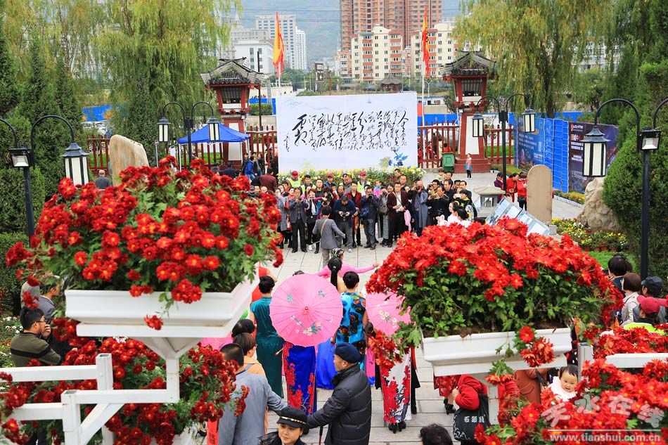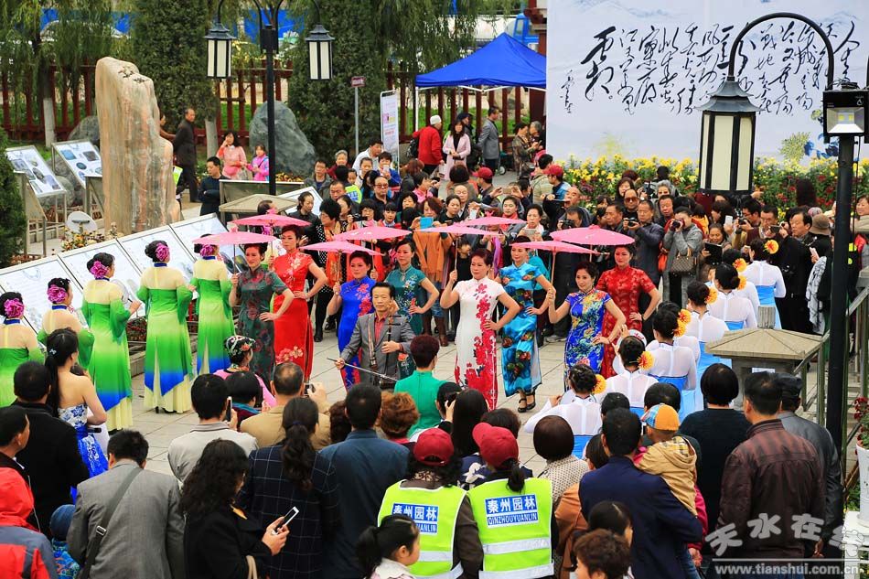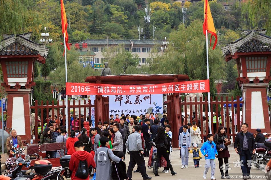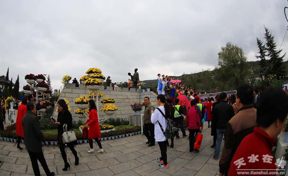 10月23日,2016年秦州區(qū)主題菊展進(jìn)入第四天。由于是周日,且雨過天晴,諸葛軍壘迎來賞花高峰。當(dāng)日,有上萬人前來賞菊。更有賞菊走秀等文藝演出,吸引了眾人目光。