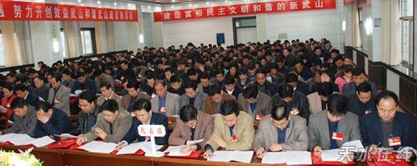 2月12日,武山縣寧遠(yuǎn)大廈七樓會(huì)議室花團(tuán)錦簇,春意盎然,伴隨著雄壯的國(guó)歌,縣第十五屆人民代表大會(huì)第三次會(huì)議在此隆重召開。
