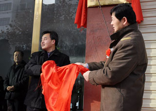 (市政府副市長趙衛(wèi)東、縣委書記溫利平為武山縣新型農(nóng)村社會養(yǎng)老保險中心揭牌)