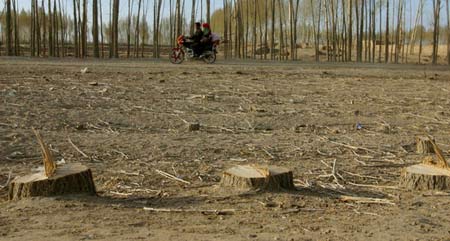 | 2007年4月27日,樹木遭砍伐,沙子快速的侵蝕田地。 |