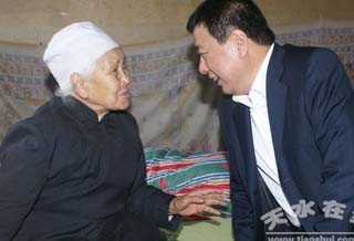 (慰問(wèn)該村百歲老人李金花,并為她送去200元慰問(wèn)金)