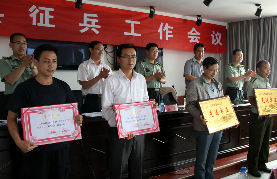 會(huì)上,朱永裁、李希富分別作了講話,人武部負(fù)責(zé)人回顧總結(jié)了去年征兵工作,表彰獎(jiǎng)勵(lì)了2012年度征兵工作中涌現(xiàn)出的先進(jìn)單位和先進(jìn)個(gè)人,并部署了今年征兵工作任務(wù),簽訂了《征兵工作責(zé)任書》,對(duì)征兵的有關(guān)政策規(guī)定、條件標(biāo)準(zhǔn)、程序辦法和優(yōu)撫安置等進(jìn)行了詳細(xì)的介紹。