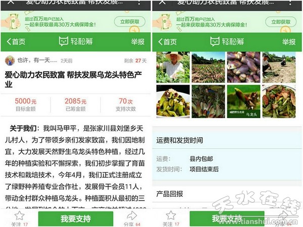 近日,一條《愛心助力農(nóng)民致富,幫扶發(fā)展烏龍頭產(chǎn)業(yè)》的眾籌消息在甘肅張家川回族自治縣干部群眾的微信圈廣為流傳,人們在為這種新的解決發(fā)展致富產(chǎn)業(yè)資金短缺的做法點(diǎn)贊的同時,打開微信錢包踴躍支持這種創(chuàng)新之舉,目前,不到3天時間已有70人次支持,籌集資金2000多元。