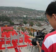 秦州城北寺,勝跡隗囂宮。苔蘚山門(mén)古,丹青野殿空。